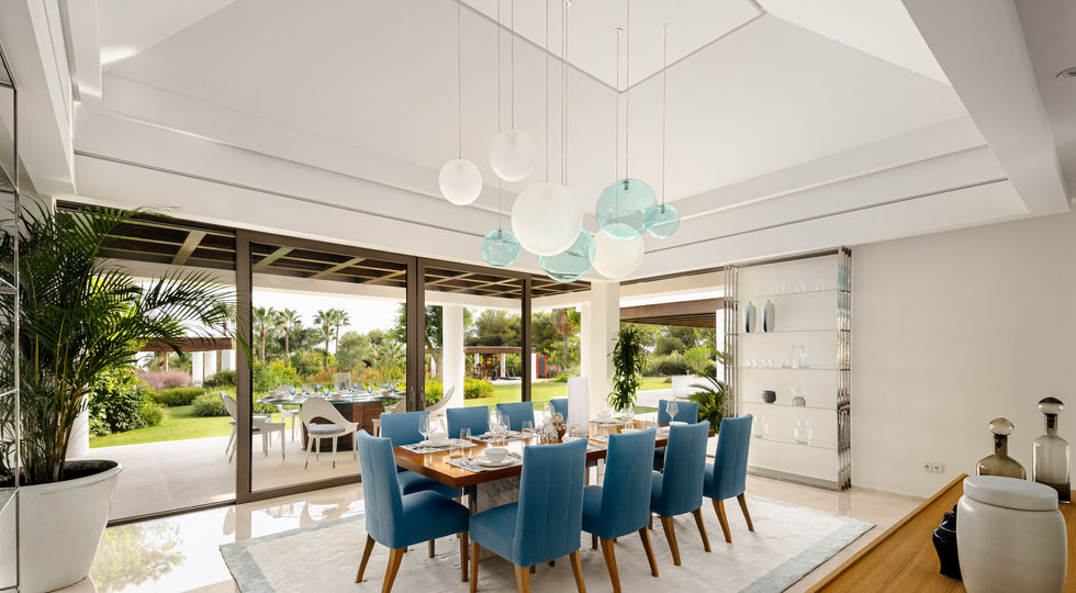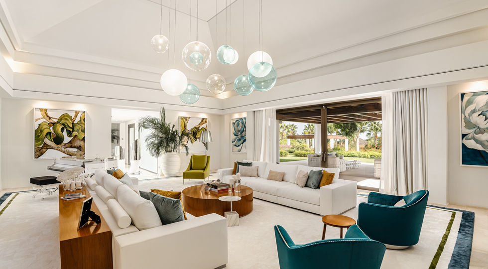 This stunning 3-level mansion for sale is one of the most outstanding properties in the super exclusive area of Marbella and the Mediterranean region, Sierra Blanca. Nestled on the impressive plot of 4980 m² at the foothills of majestic mountains, the south-facing house of 2227 m2 including terraces offers a fashionable contemporary design. Created for the most exclusive lifestyle, impeccably decorated and luxuriously appointed, it maximises the sense of privacy and blends into the natural surroundings of beautiful Sierra Blanca with elegance and grace. The luxury house was built to the highest standards using top-quality materials and innovative technology. On top of it, the property has been recently renovated and now redefines the standards of luxury. The gorgeous accommodation features spacious living, seating and dining areas both inside and al fresco, 7 bedrooms, 8 bathrooms (7 en-suite) plus 2 toilets. A fully-fitted and superbly equipped modern kitchen has a central island and informal dining area. A separate dressing room will host your designers' collections. The entertainment areas offer everything you can expect from a genuinely luxurious house including a wine cellar, cinema room, game room, SPA and fitness centre and indoor swimming pool, among many others features. The outside area with a unique swimming pool, outside gym, outrageous water objects and mature subtropical landscaped gardens keep the same style and evoke the feeling of beauty and harmony. A separate guest apartment or staff accommodation adds comfort and exclusivity. Providing a luxurious feel, the high-end house comes for sale in excellent condition and with modern comforts (Home automation system, marble and wooden floors, energy-efficient air conditioning, fitted wardrobes, glass doors, double-glazing, storage and utility areas, private garage, etc.). The most exclusive lifestyle is guaranteed in this elegant mansion surrounded with lush greenery and similar luxury properties of Sierra Blanca, the upper part of the world-famous Golden Mile of Marbella. It has it all, including extraordinary settings and flawlessly combines the Mediterranean charm, sophisticated design and entirely functional, practical, well-thought-out features. Alarm system, video entrance, surveillance cameras, and security entrance to the gated community with 24-h security service will give you peace of mind. Luxury is a key descriptive word when we speak about this impeccable property and its prime residential area, which is close to all amenities of the Golden Mile, Marbella centre and fabulous Puerto Banus.