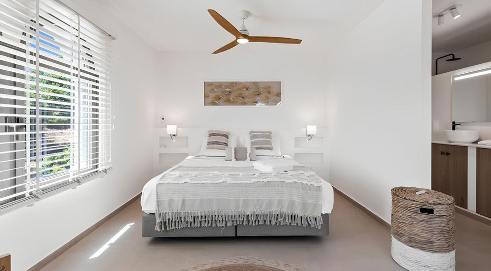 Meticulously renewed to exacting standards, this villa underwent a complete overhaul, with premium materials sourced from Northern Europe to ensure the highest quality. The entryway leads to a gracious foyer with a guest toilet, flanked by a spacious living area adorned with a functional wood-burning fireplace and expansive sliding windows that open onto the covered terrace. To the right, the kitchen and dining space showcase Gaggenau appliances, a sea-view backdrop, and floor-to-ceiling windows that connect to the covered terrace.